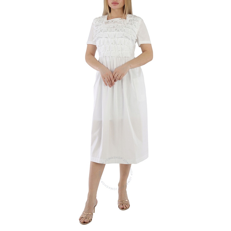 Comme Des Garcons Ladies Dresses. SKU: NC-A006-051-1. Color: White. The broderie anglaise ruffles on this white cotton-poplin dress is crafted with an open back that secures via ribbon ties, then shaped with a square-neck and gathered waistline seam. GENERAL Color: White INFORMATION Brand: Comme Des Garcons Gender: Womens Model: NC-A006-051-1 DETAILS Category: Dresses Apparel Type: Casual Dresses ADDITIONAL INFO Jomashop Sku: -CDG-NCA0060511 Department: Apparel