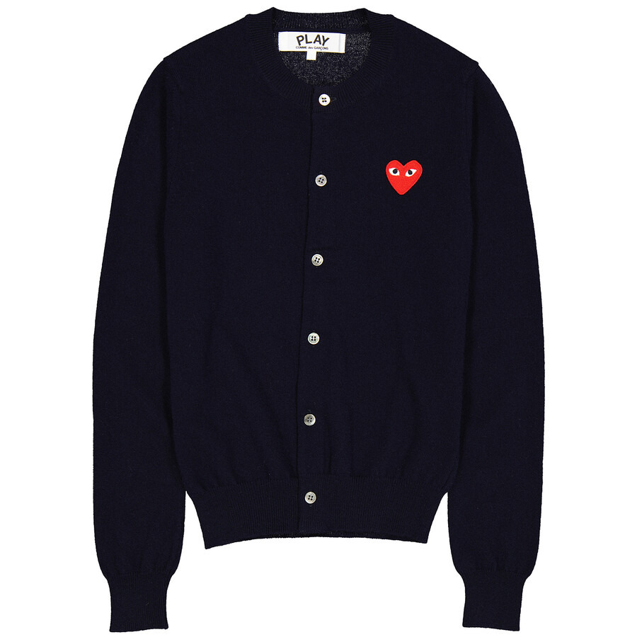 Comme Des Garcons Ladies Heart Logo Cardigan In Navy
