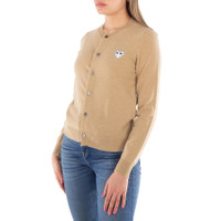 Comme Des Garcons Ladies Tops. Fashion category: Cardigans & Sweaters. SKU: P1N065-2. Color: Camel. Comme Des Garcons Ladies Heart Logo Crewneck Cardigan. Comme Des Garcons cardigan is crafted from wool with an embroidered white heart emblem on chest. This cardigan features a ribbed crew neck, a front button fastening, long sleeves and a ribbed hem and cuffs. Material: 100% Wool. GENERAL Color: Camel INFORMATION Brand: Comme Des Garcons Gender: Womens Model: P1N065-2 DETAILS Category: Tops Apparel Type: Cardigans & Sweaters ADDITIONAL INFO Jomashop Sku: -P1N0652 Department: Clothing