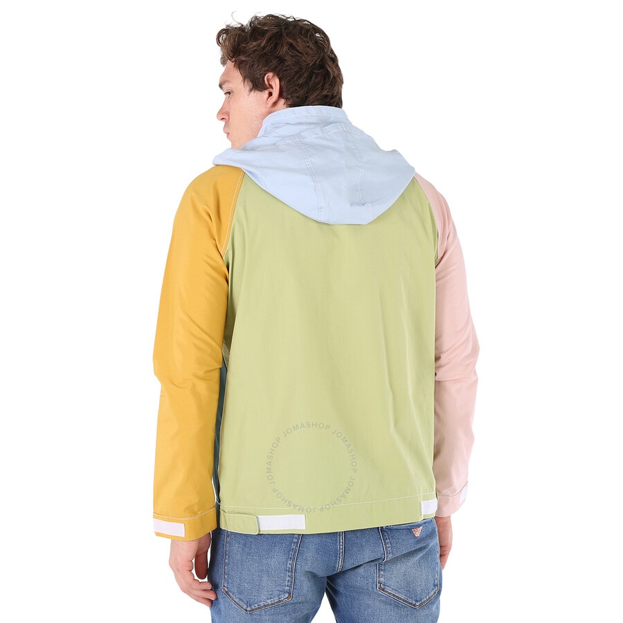 Comme Des Garcons Men's Outerwear. Fashion category: Coats & Jackets. SKU: S28163-1. Color: Green Multi. Comme Des Garcons Men's Green Colour-block Jacket. This popover jacket is made from pure cotton featuring three front zip pockets and Velcro tabs secure its cuffs and hem. GENERAL Color: Green Multi INFORMATION Brand: Comme Des Garcons Gender: Mens Model: S28163-1 DETAILS Category: Outerwear Apparel Type: Coats & Jackets ADDITIONAL INFO Jomashop Sku: -S281631 Department: Apparel