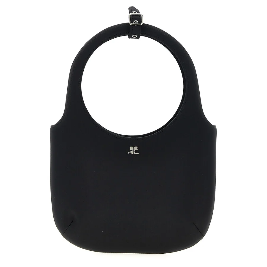 Courreges Ladies Tote. SKU: 225GSA102PL00849999. Color: Black. Courreges Holy Handbag. Holy' satin handbag with front metal logo, double fixed handle with strap detail, magnetic closure, adjustable and removable shoulder strap. Composition: 97% polyester, 3% elastane. GENERAL Brand Type: Designer Color: Black INFORMATION Brand: Courreges Gender: Womens Model: 225GSA102PL00849999 ADDITIONAL INFO UPC Code: 3667134069227 Jomashop Sku: Z-X4MEH Department: Bags Category: Tote Bags