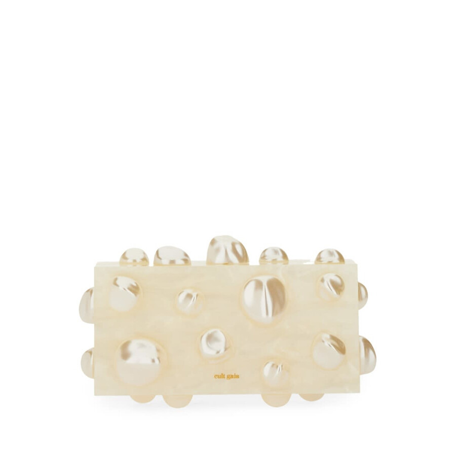 Made In China 100% Acrylic GENERAL Color: Ivory INFORMATION Brand: Cult Gaia Gender: Womens Model: CL3474AC1889_IVORY ADDITIONAL INFO Jomashop Sku: Z-CSHHU Department: Bags Category: Clutches