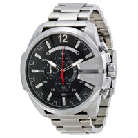 Stainless steel case with a stainless steel bracelet. Fixed stainless steel bezel. Black dial with luminous hands and index hour markers. An Arabic numeral marks the 12 o'clock position. Minute markers around the outer rim. Dial Type: Analog. Luminescent hands and markers. Date display at the 3 o'clock position. Chronograph - three sub-dials displaying: 60 second, 60 minute and 1/10th of a second. Quartz movement. Scratch resistant mineral crystal. Solid case back. Case dimensions: 59 mm x 51 mm. Case thickness: 14 mm. Round case shape. Band width: 25 mm. Band length: 8 inches. Deployment clasp. Water resistant at 100 meters / 330 feet. Functions: chronograph, date, hour, minute, second. Casual watch style. Diesel Chief Chronograph Black Dial Stainless Steel Men's Watch DZ4308. CASE Case Size: 59 Case Thickness: 14 mm Case Material: Stainless Steel Case Shape: Round Case Back: Solid BAND Band Material: Stainless Steel Band Type: Bracelet Band Color: Silver-tone Band Length: 8 inches Band Width: 25 mm Clasp: Deployment DIAL Dial Color: Black Type: Analog Crystal: Scratch Resistant Mineral Hands: Luminous Dial Markers: Index Second Markers: Arabic Numeral marks the 12 o'clock position. Minute Markers around the outer rim Sub Dials: Three - 60 Second, 60 Minute and 1/10th of a Second Luminiscence: Hands and Markers Bezel: Fixed Bezel Color: Silver-tone Bezel Material: Stainless Steel INFORMATION Brand: Diesel Series: Chief Collection Name: Chief Gender: Mens Model: DZ4308 Movement: Quartz FEATURES Water Resistance: 100 meters / 330 feet Calendar: Date display at the 3 o'clock position Functions: Chronograph, Date, Hour, Minute, Second Watch Features: Chronograph, Stainless Steel, Analog ADDITIONAL INFO Watch Style: Casual Warranty: 2 Year Jomashop Warranty UPC Code: 698615092598 Jomashop Sku: DZ4308 Department: Watches Category: Watches