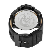 Black ion-plated stainless steel case with a black (calfskin) leather strap. Fixed black ion-plated stainless steel bezel. Black dial with skeleton hands and index hour markers. An Arabic numeral appears at 12 o'clock. Arabic numeral minute markers (at 5 minute intervals). Minute markers around the outer rim. Dial Type: Analog. Luminescent hands and markers. Date display at the 3 o'clock position. Chronograph - three sub-dials displaying: 60 second, 60 minute and 1/10th of a second. Quartz movement. Scratch resistant iridescent mineral crystal. Pull / push crown. Solid case back. Case dimensions: 59 mm x 51 mm. Case thickness: 12 mm. Round case shape. Band width: 26 mm. Tang clasp. Water resistant at 100 meters / 330 feet. Functions: chronograph, date, hour, minute, second. Casual watch style. Diesel Mega Chief Chronograph Black Dial Men's Watch DZ4323. CASE Case Size: 59 Case Thickness: 12 mm Case Color: Black Ion-Plated Case Material: Stainless Steel Case Shape: Round Case Back: Solid BAND Band Material: Calfskin Leather Band Type: Strap Band Color: Black Band Width: 26 mm Clasp: Tang DIAL Dial Color: Black Type: Analog Crystal: Scratch Resistant Iridescent Mineral Hands: Skeleton Dial Markers: Index Second Markers: An Arabic Numeral appears at 12 o'clock. Minute Markers around the outer rim Sub Dials: Three - 60 Second, 60 Minute and 1/10th of a Second Luminiscence: Hands and Markers Bezel: Fixed Bezel Color: Black Ion-plated Bezel Material: Stainless Steel Crown: Pull / Push INFORMATION Brand: Diesel Series: Mega Chief Collection Name: Mega Chief Gender: Mens Model: DZ4323 Movement: Quartz FEATURES Water Resistance: 100 meters / 330 feet Calendar: Date display at the 3 o'clock position Functions: Chronograph, Date, Hour, Minute, Second Watch Features: Analog, Leather, Stainless Steel, Chronograph ADDITIONAL INFO Watch Style: Casual Warranty: 2 Year Jomashop Warranty UPC Code: 698615095636 Jomashop Sku: DZ4323 Department: Watches Category: Watches