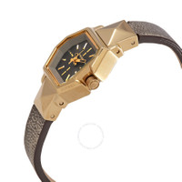 Gold-tone stainless steel case with a black leather strap. Fixed gold-tone bezel. Gunmetal dial with luminous gold-tone hands and index hour markers. Dial Type: Analog. Luminescent hands. Quartz movement. Scratch resistant mineral crystal. Pull / push crown. Solid case back. Unique case shape. Case dimensions: 23 mm x 29 mm. Case thickness: 9 mm. Band width: 10 mm. Band length: 7 inches. Tang clasp. Water resistant at 100 meters / 330 feet. Functions: hour, minute, second. Casual watch style. Diesel Timeframes SS 16 Gunmetal Dial Ladies Watch DZ5491. INFORMATION Brand: Diesel Series: Timeframes Ss 16 Collection Name: Timeframes SS 16 Gender: Womens Model: DZ5491 Movement: Quartz CASE Case Size: 23 mm x 29 mm Case Thickness: 9 mm Case Material: Stainless Steel Case Shape: Unique Case Back: Solid BAND Band Material: Leather Band Type: Strap Band Color: Black Band Length: 7 inches Band Width: 10 mm Clasp: Tang DIAL Dial Color: Gunmetal Type: Analog Crystal: Scratch Resistant Mineral Hands: Luminous Gold-tone Dial Markers: Index Luminiscence: Hands Bezel: Fixed Bezel Color: Gold-tone Bezel Material: Stainless Steel Crown: Pull / Push FEATURES Water Resistance: 100 meters / 330 feet Functions: Hour, Minute, Second Watch Features: Stainless Steel, Leather, Gold, Analog ADDITIONAL INFO Watch Style: Casual Warranty: 2 Year Jomashop Warranty UPC Code: 698615109227 Jomashop Sku: DZ5491 Department: Watches Category: Watches