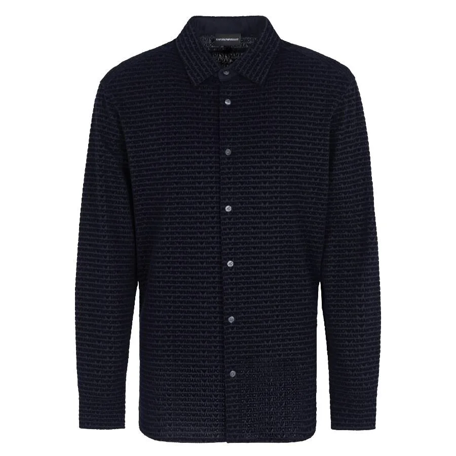 Emporio Armani Men's Tops. Fashion category: Casual Button-Downs. SKU: EM001537-AF10017-FB229. Color: Em Navy Allover Flocking. Emporio Armani Asv Lyocell Blend Jersey Shirt. This shirt is crafted from a soft cotton and Lyocell blend jersey and embellished with a dense all-over flocked logo lettering pattern. Designed with a classic collar, front button closure, long sleeves with angled cuffs, and a back yoke. 70% Lyocell, 30% Cotton. GENERAL Brand Type: Designer Color: Em001289 Navy Allover Flocking INFORMATION Brand: Emporio Armani Gender: Mens Model: EM001537-AF10017-FB229 DETAILS Category: Tops Apparel Type: Casual Button-Downs Material: Lyocell, Cotton ADDITIONAL INFO Jomashop Sku: -M001537AF10017FB229 Department: Clothing