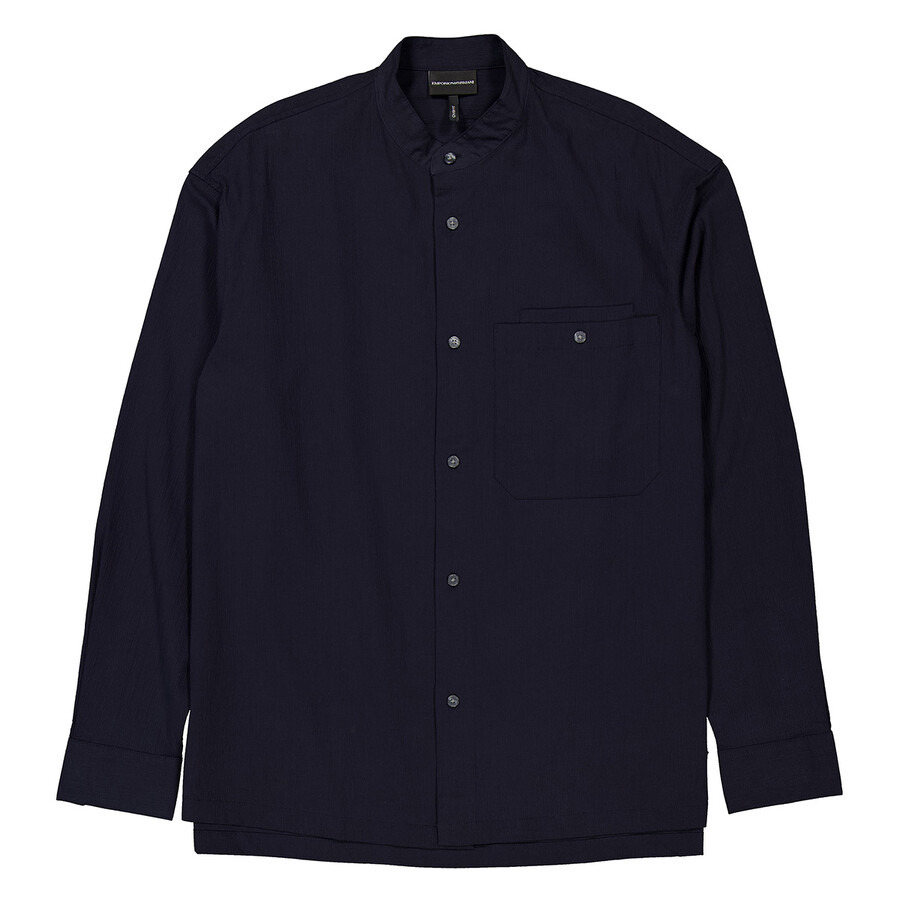 Emporio Armani Men's Tops. Fashion category: Shirts & Blouses. SKU: 6D1CL4-1NUFZ-0920. Color: Blu Navy. Emporio Armani Cotton Muslin Band-Collar Shirt. Crafted from cotton muslin, this shirt features a band collar, front button fastening, long sleeves with buttoned cuffs, a chest patch pocket, and a straight hem. Cotton 100% GENERAL Brand Type: Designer Color: Blu Navy INFORMATION Brand: Emporio Armani Gender: Mens Model: 6D1CL4-1NUFZ-0920 DETAILS Category: Tops Apparel Type: Shirts & Blouses Material: Cotton ADDITIONAL INFO Jomashop Sku: -6D1CL41NUFZ0920 Department: Clothing
