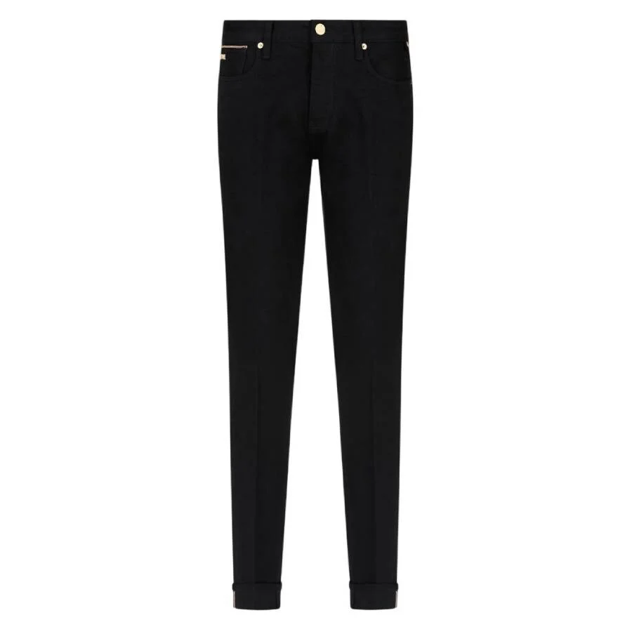 Emporio Armani Men's Bottoms. Fashion category: Jeans & Denim. SKU: EM000668-AF10073-MC002. Color: Black Denim. Emporio Armani Embroidered J75 Slim-Fit Jeans. Low-rise jeans crafted in untreated stretch selvedge denim canvas, featuring a slim fit with a regular leg for a clean, modern silhouette. Designed in a classic five-pocket style, they include a button fly closure and belt loops at the low-rise waist. Distinctive details elevate the piece, such as the EA logo embroidery on the coin pocket, a dedicated jacron label showcasing the collection theme, and signature collection embroidery with a snake motif on the back pocket. 99% cotton, 1% elastane. GENERAL Size Info: 36 Brand Type: Designer Clothing Size: Men's Apparel Size: 36 Color: Black Denim INFORMATION Brand: Emporio Armani Gender: Mens Model: EM000668-AF10073-MC002 DETAILS Category: Bottoms Apparel Type: Jeans & Denim Material: Cotton, Elastane ADDITIONAL INFO UPC Code: 8059659551434 Jomashop Sku: Z-MHW7Z Department: Clothing