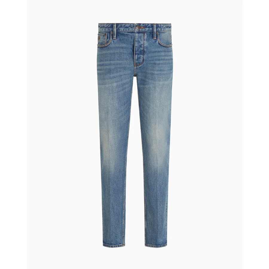 Low-rise jeans with a regular leg and button fly. The piece is made of stretch denim selvedge canvas. Worn with a jacket and shirt, they give off an air of sophistication and allure; paired with a sweatshirt and sneakers, they become a symbol of modern youthfulness. Slim fit. Fabric: 99% cotton, 1% elastane; leather label: 100% calf leather Slim fit 13.2-oz denim Five-pocket style Low-rise waist with loops Button closure Coin pocket with EA logo plate Leather logo tag Eagle plate GENERAL Brand Type: Designer Color: Medium Blue Denim INFORMATION Brand: Emporio Armani Gender: Mens Model: EM000668-AF13442-MB002 DETAILS Category: Bottoms Apparel Type: Jeans & Denim ADDITIONAL INFO Jomashop Sku: -M000668AF13442MB002 Department: Clothing