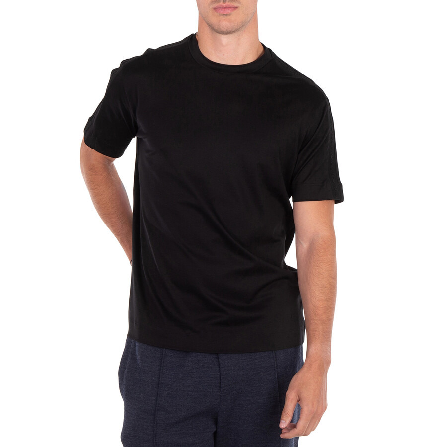 Emporio Armani Men's Tops. Fashion category: T-Shirts & Henleys. SKU: 6D1TD6-1JOSZ-0999. Color: Nero. Emporio Armani Logo Tape Lyocell-Blend T-Shirt. A regular-fit jersey T-shirt made from a cotton and Lyocell blend, featuring a crew neck, short sleeves, and a dense pattern of flock-print logo lettering. 70% lyocell, 30% cotton; tape: 73% polyester, 17% polyamide, 10% elastane. GENERAL Brand Type: Designer Color: Nero INFORMATION Brand: Emporio Armani Gender: Mens Model: 6D1TD6-1JOSZ-0999 DETAILS Category: Tops Apparel Type: T-Shirts & Henleys Material: Lyocell, Cotton ADDITIONAL INFO Jomashop Sku: -6D1TD61JOSZ0999 Department: Clothing