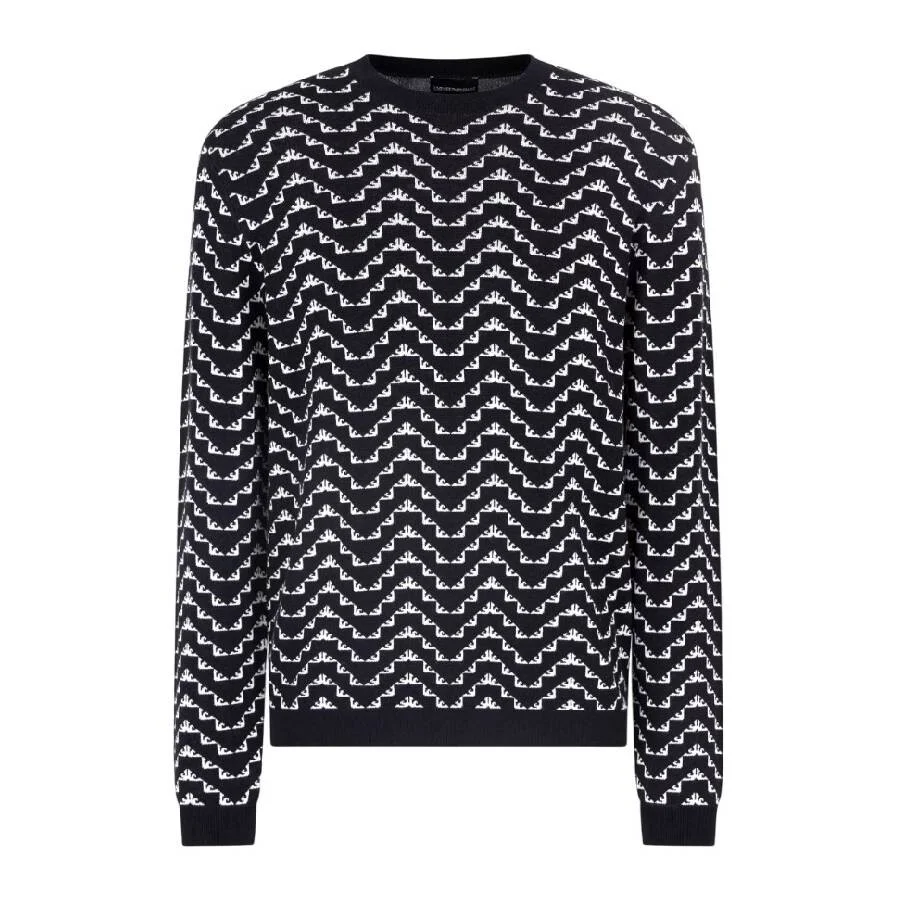Emporio Armani Men's Tops. Fashion category: Cardigans & Sweaters. SKU: EM001556-AF14718-FB167. Color: Navy Eagle Wave. Emporio Armani Long Sleeve Pullover Sweater. This Pullover Sweater features an all-over eagle design, a crew neckline, long sleeves, and rib-knit cuffs and hem. 55% Lyocell, 40% Virgin Wool, 5% Silk. GENERAL Brand Type: Designer Color: Navy Eagle Wave INFORMATION Brand: Emporio Armani Gender: Mens Model: EM001556-AF14718-FB167 DETAILS Category: Tops Apparel Type: Cardigans & Sweaters ADDITIONAL INFO Jomashop Sku: -M001556AF14718FB167 Department: Clothing