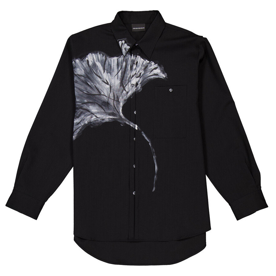 Emporio Armani Men's Tops. Fashion category: Casual Button-Downs. SKU: E31F62-F1173-999. Color: Black. Emporio Armani Nature Print Woven Shirt. This Armani shirt features a sleek black design with a striking, oversized silver leaf graphic that extends across the chest and shoulder. The long-sleeve silhouette, button-down front, and single chest pocket add a classic touch. GENERAL Brand Type: Designer Color: Black INFORMATION Brand: Emporio Armani Gender: Mens Model: E31F62-F1173-999 DETAILS Category: Tops Apparel Type: Casual Button-Downs ADDITIONAL INFO Jomashop Sku: -E31F62F1173999 Department: Clothing