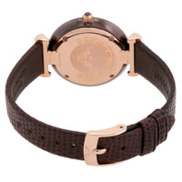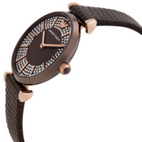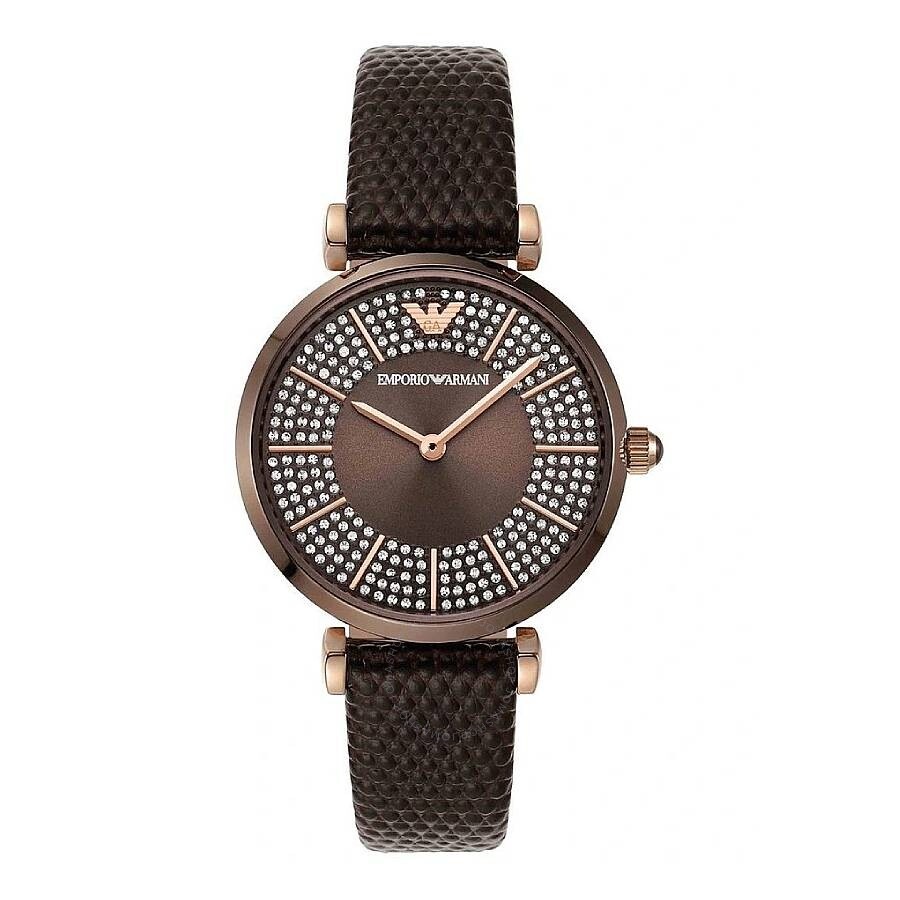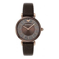 Brown stainless steel case with a brown leather strap. Fixed brown stainless steel bezel. Brown dial with rose gold-tone hands and index hour markers. Dial Type: Analog. Quartz movement. Scratch resistant sapphire crystal. Pull / push crown. Solid case back. Round case shape, case size: 32 mm. Buckle clasp. Water resistant at 30 meters / 100 feet. Functions: hour, minute. Casual watch style. Watch label: Japan Movt. Emporio Armani Quartz Brown Dial Ladies Watch AR11565. CASE Case Size: 32 Case Material: Stainless Steel Case Shape: Round Case Back: Solid BAND Band Material: Leather Band Type: Strap Band Color: Brown Clasp: Buckle DIAL Dial Color: Brown Type: Analog Crystal: Scratch Resistant Sapphire Hands: Rose Gold-tone Dial Markers: Index Bezel: Fixed Bezel Color: Brown Bezel Material: Stainless Steel Crown: Pull / Push INFORMATION Brand: Emporio Armani Gender: Womens Model: AR11565 Watch Label: Japan Movt Movement: Quartz FEATURES Water Resistance: 30 meters / 100 feet Functions: Hour, Minute Watch Features: Stainless Steel, Leather, Gold, Analog ADDITIONAL INFO Watch Style: Casual Warranty: 2 Year Jomashop Warranty Jomashop Sku: AR11565 Department: Watches