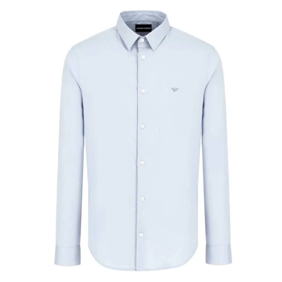 Emporio Armani Men's Tops. Fashion category: Casual Button-Downs. SKU: 8N1C09-1NI9Z-0785. Color: Azzurro. Emporio Armani Stretch Nylon-Blend Long-Sleeved Shirt. This shirt is crafted from stretch fabric for a comfortable, flexible fit. It features a classic collar, front button closure, and long sleeves, offering a timeless silhouette. A matching eagle embroidery accents the chest, adding a signature detail. The design is finished with a back yoke and double darts on the back, ensuring a tailored and refined look. 76% Cotton, 21% Polyamide, 3% Elastane. Made in Tunisia. GENERAL Brand Type: Designer Color: Azzurro INFORMATION Brand: Emporio Armani Gender: Mens Model: 8N1C09-1NI9Z-0785 DETAILS Category: Tops Apparel Type: Casual Button-Downs Material: Cotton, Elastane, Polyamide ADDITIONAL INFO Jomashop Sku: -8N1C091NI9Z0785 Department: Clothing