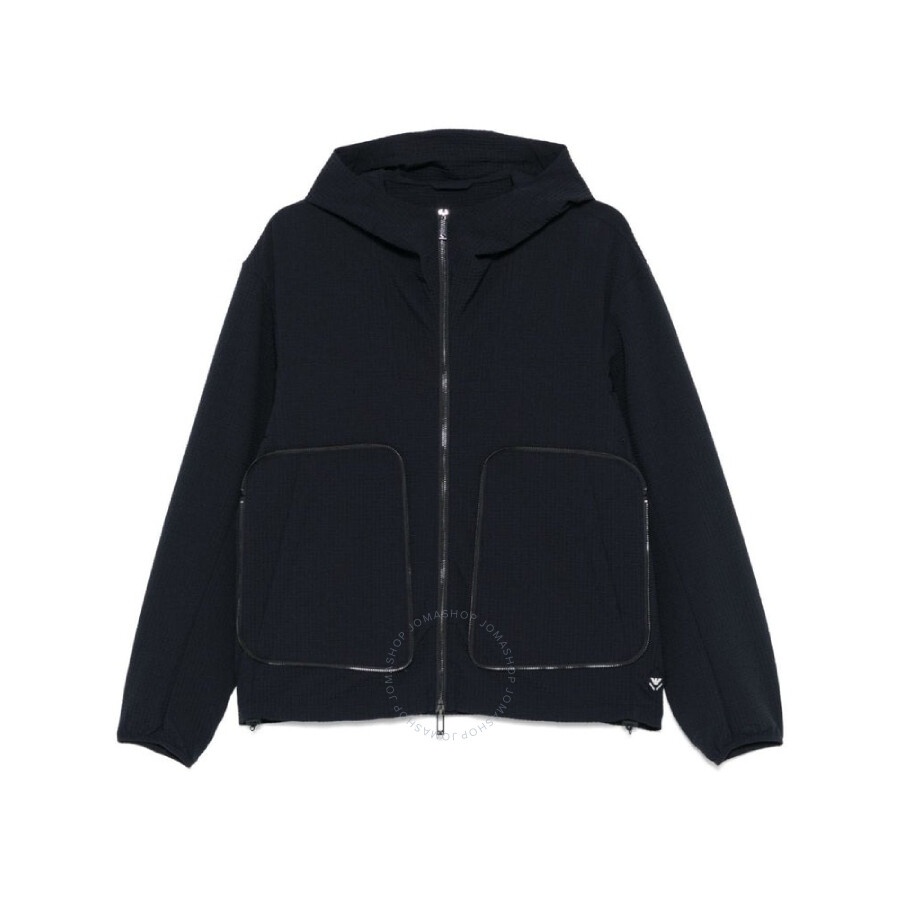 Emporio Armani Men's Outerwear. Fashion category: Coats & Jackets. SKU: 6D1B61-1NSCZ-0920. Material: Polyester. Color: Blu Navy. Emporio Armani Technical-Seersucker Hooded Blouson. This blouson features a hood, zip closure, long sleeves with stretch cuffs, and side pockets with press studs. 90% polyamide, 10% elastane. GENERAL Brand Type: Designer Color: Blu Navy INFORMATION Brand: Emporio Armani Gender: Mens Model: 6D1B61-1NSCZ-0920 DETAILS Category: Outerwear Apparel Type: Coats & Jackets Material: Polyester ADDITIONAL INFO Jomashop Sku: -6D1B611NSCZ0920 Department: Clothing