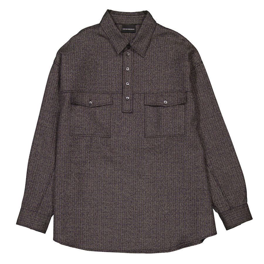 Emporio Armani Men's Tops. Fashion category: Shirts & Blouses. SKU: H41F33-E1204-992. Color: Blue. Emporio Armani Wool Camica Woven Shirt. This Armani shirt features a classic, understated design with a subtle checkered pattern. It includes a half-button placket, two chest pockets with button closures, and a structured collar. The long sleeves and relaxed fit make it a versatile piece. 100% virgin wool. GENERAL Brand Type: Designer Color: Blue INFORMATION Brand: Emporio Armani Gender: Mens Model: H41F33-E1204-992 DETAILS Category: Tops Apparel Type: Shirts & Blouses Material: Wool ADDITIONAL INFO Jomashop Sku: -H41F33E1204992 Department: Clothing
