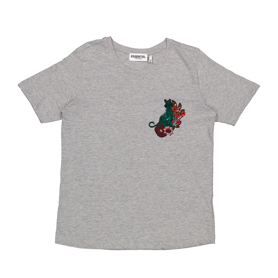 Essentiel Ladies Grey Rigo Cat Patch T-Shirt
