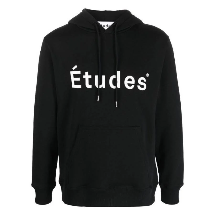 Etudes Men's Tops. Fashion category: Hoodies & Sweatshirts. SKU: C00ME250A01599-BLACK. Color: Black. Etudes Klein Logo Print Cotton Hoodie. This hoodie features long sleeves and a drawstring hood for a timeless, comfortable fit. It includes tone-on-tone ribbing at the cuffs and hem, adding subtle texture and structure. A wide kangaroo pocket at the front offers practicality and warmth, while the Etudes logo is screen-printed on the chest. 100% Organic Cotton. Made in Portugal. GENERAL Color: Black INFORMATION Brand: Etudes Gender: Mens Model: C00ME250A01599-BLACK DETAILS Category: Tops Apparel Type: Hoodies & Sweatshirts Material: Cotton ADDITIONAL INFO Jomashop Sku: -C00ME250A01599BLACK Department: Clothing