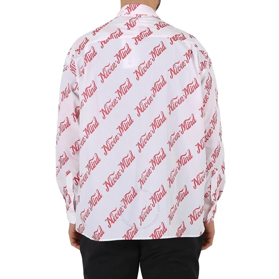 Etudes Men's Tops. Fashion category: Casual Button-Downs. SKU: H22MM350CO02WT-WHITE. Color: White. Etudes Men's White Nevermind Long-Sleeved Shirt. A cotton shirt featuring a classic collar, long sleeves with buttoned cuffs, straight hem, front button fastening and adorned with a distinctive slogan pattern "Nevermind" allover. Cotton 100% GENERAL Color: White INFORMATION Brand: Etudes Gender: Mens Model: H22MM350CO02WT-WHITE DETAILS Category: Tops Apparel Type: Casual Button-Downs ADDITIONAL INFO Jomashop Sku: -H22MM350CO02WTWHITE Department: Apparel