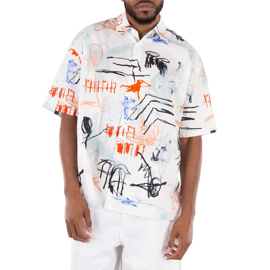 Etudes Men's Tops. Fashion category: Casual Button-Downs. SKU: E24MC300A005P1-CIEL DE MAI. Color: Multicolor. Etudes x Julian Farade Illusion Cotton Shirt. Made from organic cotton, the Julian Farade Illusion shirt features a poplin texture with an abstract pattern print, rivet detailing, and mother-of-pearl buttons. It has a spread collar, front button fastening, drop shoulders, short sleeves, and a straight hem. Organic Cotton 100% GENERAL Color: Multicolor INFORMATION Brand: Etudes Gender: Mens Model: E24MC300A005P1-CIEL DE MAI DETAILS Category: Tops Apparel Type: Casual Button-Downs Material: Organic Cotton ADDITIONAL INFO Jomashop Sku: -C300A005P1CIELDEMAI Department: Clothing