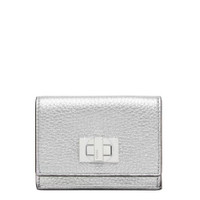 Fendi Ladies Wallets. SKU: 8M0426-AQEV-F0MK5. Color: Argento/Palladio. Size: H: 7 cm × D: 3.5 cm × W: 9.5 cm. Fendi Argento/Palladio Ladies Peekaboo Micro Tri-fold Wallet. This wallet features a tri-fold design with a spacious interior compartment for bills, three hidden card slots, an exterior coin case with an twist lock and palladium-finished metal parts. 100% calf leather, Inside: 100% calf leather, 50% cotton, 42% polyamide, 8% resin. Made in Italy. GENERAL Size Info: H: 7 cm × D: 3.5 cm × W: 9.5 cm Brand Type: Designer Color: Argento/Palladio INFORMATION Brand: Fendi Gender: Womens Model: 8M0426-AQEV-F0MK5 DETAILS Material: Cotton, Leather, Polyamide, Resin ADDITIONAL INFO UPC Code: 2004005444843 Jomashop Sku: Z-7T7XM Department: Bags Category: Wallets
