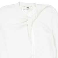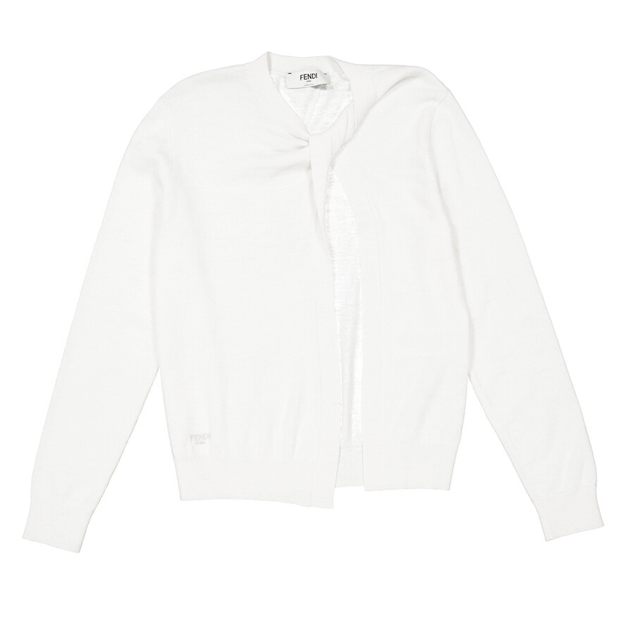 Fendi Ladies Tops. Fashion category: Cardigans & Sweaters. SKU: FZC968-AOEL-F1M2A. Color: Penelope/Panna. Fendi Asymmetrical Cut Wool Cardigan. An alpaca wool cardigan with a twisted knot at the round neckline, an asymmetrical cut, ribbed edges, and an embroidered logo on the front. 100% Wool. Made in Italy. GENERAL Color: Penelope/Panna INFORMATION Brand: Fendi Gender: Womens Model: FZC968-AOEL-F1M2A DETAILS Category: Tops Apparel Type: Cardigans & Sweaters Material: Wool ADDITIONAL INFO Jomashop Sku: -FZC968AOELF1M2A Department: Clothing