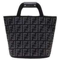 Fendi Men's Tote. SKU: 7VA602-APDH-F1MLQ. Material: Cashmere;Leather;Polyamide. Color: Black/Asf/Black/P. Size: 32cm x 30cm x 42cm. Fendi FF Cashmere Blend Shopping Bag. The cashmere knit shopper bag features an FF motif in shades of gray and black. A special treatment of the yarn gives the bag a compact, durable finish. It is unlined and has padded handles with black leather detailing, along with a snap-button closure. 65% cashmere, 35% polyamide, 100% calf leather. M ade in Italy. GENERAL Size Info: 32cm x 30cm x 42cm Color: Black/Asf/Black/P Upper Material: Fabric Lining Material: Fabric INFORMATION Brand: Fendi Gender: Mens Model: 7VA602-APDH-F1MLQ DETAILS Material: Cashmere, Leather, Polyamide ADDITIONAL INFO UPC Code: 2004005401105 Jomashop Sku: Z-H6F9X Department: Bags Category: Tote Bags