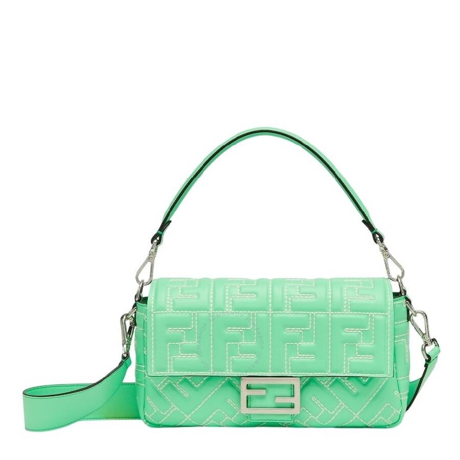 Fendi Ladies Shoulder Bag. SKU: 8BR600-ANX4-F1L1Q. Color: Edamame/Pvib. Fendi FF Motif Shoulder Bag. This shoulder bag features the FF motif, embellished with an embossed FF design and contrasting white topstitching. It is decorated with an FF clasp and includes a front flap with a magnetic clasp, a single internal compartment with a zipper pocket, vintage palladium-finish metalware and a detachable shoulder strap. 100% Lambskin, interior: 100% Lambskin, 61% Cotton, 32% Polyester, 7% Polyurethane. GENERAL Size Info: H: 15cm, D: 6cm, W: 27cm Color: Edamame/Pvib INFORMATION Brand: Fendi Gender: Womens Model: 8BR600-ANX4-F1L1Q DETAILS Material: Cotton, Lambskin, Polyester ADDITIONAL INFO UPC Code: 2004005045897 Jomashop Sku: Z-E9WYB Department: Bags Category: Shoulder Bag