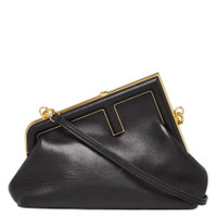 Fendi Ladies Clutch. SKU: 8BP129-ABVE-F0KUR. Barcode: 2004003544248. Color: Black. Size: H: 18 cm x D: 9.5 cm x W: 26 cm. Fendi First Small Nappa Leather Clutch. The small Fendi First bag, made from soft nappa leather with a tone-on-tone nappa leather-wrapped macro F metal closure, boasts a fabric-lined interior with the iconic FF motif, gold-finish hardware, a detachable shoulder strap, and the flexibility to be styled as a clutch or shoulder bag, expertly crafted in Italy. Material: Lamb leather (nappa). GENERAL Size Info: H: 18 cm x D: 9.5 cm x W: 26 cm Color: Black INFORMATION Brand: Fendi Gender: Womens Model: 8BP129-ABVE-F0KUR DETAILS Material: Nappa Leather DIMENSIONS Size: Small ADDITIONAL INFO UPC Code: 2004003544248 Jomashop Sku: Z-RJPFL Department: Bags Category: Clutches