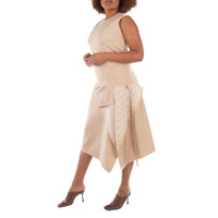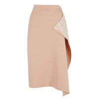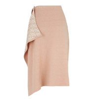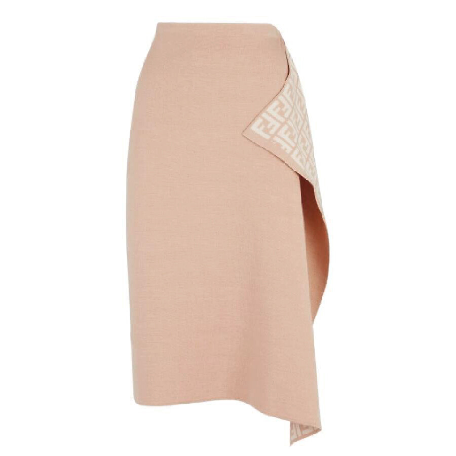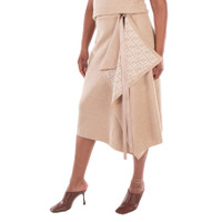 Fendi Ladies Bottoms. Fashion category: Skirts. SKU: FZQ706-ANER-F1KE0. Material: Wool. Color: Buff. Fendi Logo Pattern Midi Drape Wool Skirt. This midi skirt features an asymmetrical hem and a medium-low waistline, with a wrap closure secured by metal rings and long logo ribbons. Made from a fine beige double-sided wool knit, the underside is accented with a contrasting FF motif, which is visible along the side drape for a unique touch. 100% Wool. Made in Italy. GENERAL Brand Type: Designer Color: Buff INFORMATION Brand: Fendi Gender: Womens Model: FZQ706-ANER-F1KE0 DETAILS Category: Bottoms Apparel Type: Skirts Material: Wool ADDITIONAL INFO Jomashop Sku: -FZQ706ANERF1KE0 Department: Clothing