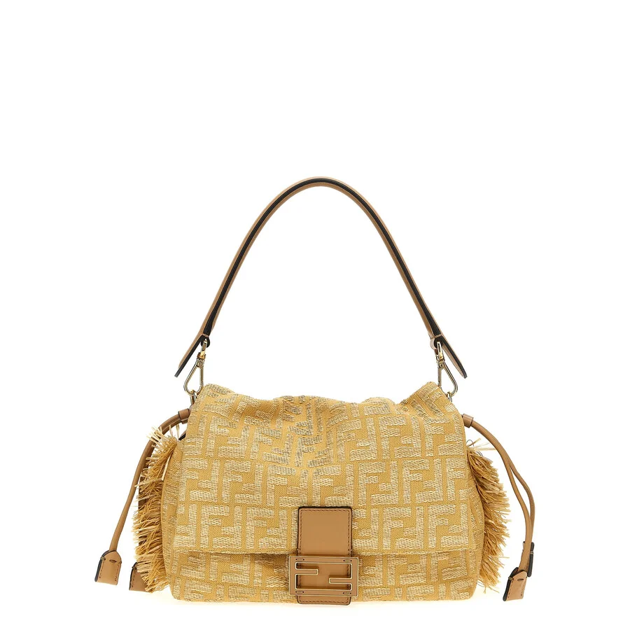 'Mamma Baguette Medium' Jacquard Fabric Shoulder Bag With Iconic Viscose Raffia Ff Pattern, Fringed Sides, Leather Details, Adjustable Inner Drawstring, Magnetic Flap Closure With Metal And Leather Logo Buckle, Removable Short Handle, Removable Shoulder Strap. Composition: GENERAL Brand Type: Designer INFORMATION Brand: Fendi Gender: Womens Model: 8BR833 AV5J F17A1 ADDITIONAL INFO Jomashop Sku: Z-SEV87 Department: Bags Category: Shoulder Bag