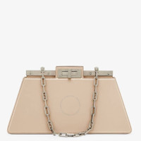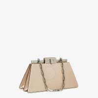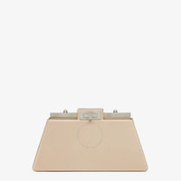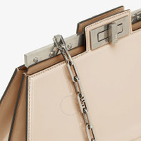 Brand: Fendi. SKU: 8BN340-ANSC-F1LFT. The Fendi Peekaboo Cut Bag reimagines the brand's iconic design with a sleek horizontal cut that highlights its timeless elegance. Crafted in Italy from glossy beige calf leather, this refined bag features a striking reveal of the signature metal bar and twist lock on both sides. Inside, a luxurious soft nappa leather lining divides the space into two compartments separated by a stiff partition, complete with an inner pocket for added functionality. The bag is accented with vintage palladium-finish hardware and a distinctive chain strap embellished with O’Lock details, offering versatile styling as a hand or shoulder carry. Composition: 100% calf leather exterior; 100% lamb leather interior. Made in Italy. GENERAL Color: Beige Amid/Pbur/Pvib INFORMATION Brand: Fendi Gender: Womens Model: 8BN340-ANSC-F1LFT DETAILS Material: Calfskin, Lambskin DIMENSIONS Size: Medium ADDITIONAL INFO Jomashop Sku: Z-VT2WW Department: Bags Category: Shoulder Bag