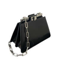 Fendi Ladies Top Handle Bag. SKU: 8BN339-ANSC-F1JUW. Color: Black. Fendi Peekaboo Chain-Link Handle Bag. This bag features a striking horizontal cut that accentuates its classic design, revealing the metal bar and iconic twist lock on both sides. It has a soft nappa leather lining, two compartments separated by a stiff partition, an inner pocket, and vintage palladium-finish bars and metal hardware. The chain-link handle is embellished with O’Lock details. 100% calfskin, lining: 100% lambskin. Made in Italy. GENERAL Size Info: H: 14cm, D: 11cm, W: 20.5cm Color: Black INFORMATION Brand: Fendi Gender: Womens Model: 8BN339-ANSC-F1JUW DETAILS Material: Calfskin, Lambskin ADDITIONAL INFO UPC Code: 2004005048263 Jomashop Sku: Z-SQMC5 Department: Bags Category: Top Handle Bag