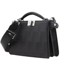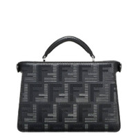 Fendi Men's Crossbody. SKU: 7VA582-AP1T-F0GXN. Color: Black/Palladio. Size: H: 14.5 cm × D: 6 cm × W: 23 cm. Fendi Peekaboo ISeeU Leather Crossbody Bag. This bag is crafted from Shadow leather with a striped texture featuring the FF motif. The front is adorned with a signature twist lock, while the back includes a zipper fastening, a tone-on-tone inner leather lining, two compartments separated by a rigid partition, a card slot, and palladium-finish metal hardware. This bag can be carried by hand or over the shoulder, with its handle or the adjustable, detachable shoulder strap with logo lettering. 100% calf leather, inside: 100% calf leather, 90% polyester, 10% polyurethane. Made in Italy. GENERAL Size Info: H: 14.5 cm × D: 6 cm × W: 23 cm Brand Type: Designer Color: Black/Palladio INFORMATION Brand: Fendi Gender: Mens Model: 7VA582-AP1T-F0GXN DETAILS Material: Leather, Polyester ADDITIONAL INFO UPC Code: 2004005398825 Jomashop Sku: Z-LP27B Department: Bags Category: Crossbody