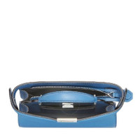 Fendi Men's Crossbody. SKU: 7VA582-AMA3-F1JS5. Color: Fiordaliso/Blueber/P. Fendi Peekaboo Leather Crossbody Bag. This bag features the iconic twist lock at the front and a zipper closure at the back. Inside, it has tone-on-tone leather lining, two compartments separated by a stiff partition, a contrasting-color cardholder slot, and palladium-finish metal hardware. It also includes an adjustable, detachable shoulder strap made of webbing with Fendi lettering. 100% Calfskin, interior: 100% Calfskin, 90% Polyester, 10% Polyurethane. GENERAL Size Info: H: 14.5cm × D: 6cm × W: 23cm Color: Fiordaliso/Blueber/P INFORMATION Brand: Fendi Gender: Mens Model: 7VA582-AMA3-F1JS5 DETAILS Material: Calfskin, Polyester ADDITIONAL INFO UPC Code: 2004005047723 Jomashop Sku: Z-ALQSQ Department: Bags Category: Crossbody