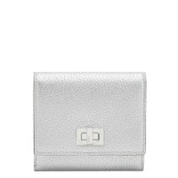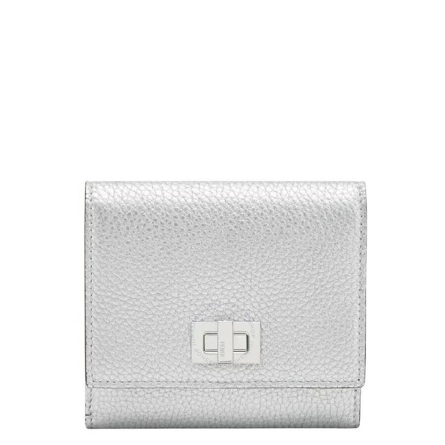 Fendi Ladies Wallets. SKU: 8M0438-AQEV-F0MK5. Color: Argento/Palladio. Size: H: 12.2 cm × D: 3 cm × W: 10.5 cm. Fendi Peekaboo Tri-Fold Leather Wallet. This wallet features a tri-fold design with a gusseted coin compartment and twist lock. It includes one external compartment with a snap button fastening, 10 internal card slots, 2 flat pockets, and 2 banknote compartments, all accented with palladium-finished metalware. 100% calf leather, Inside: 100% calf leather, 50% cotton, 42% polyamide, 8% resin. Made in Italy. GENERAL Size Info: H: 12.2 cm × D: 3 cm × W: 10.5 cm Brand Type: Designer Color: Argento/Palladio INFORMATION Brand: Fendi Gender: Womens Model: 8M0438-AQEV-F0MK5 DETAILS Material: Cotton, Leather, Polyamide, Resin ADDITIONAL INFO UPC Code: 2004005445284 Jomashop Sku: Z-BL3BX Department: Bags Category: Wallets