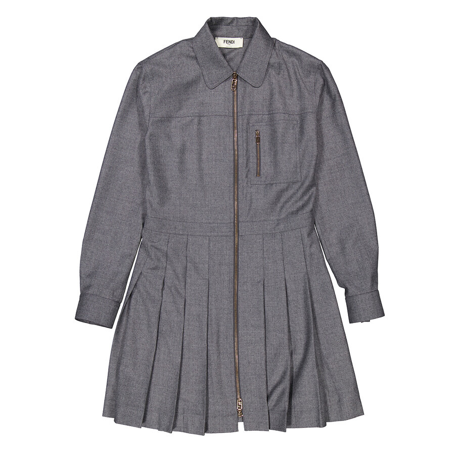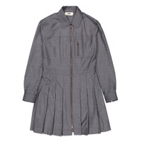 Fendi Ladies Dresses. Fashion category: Casual Dresses. SKU: FDC846-AM3N-F0TDR. Material: Wool. Color: Grey. Fendi Pleated Long Sleeves Wool Dress. A pleated wool dress featuring a collar, long sleeves with button cuffs, a zip closure, and a patch pocket on the chest with a zipper. 100% Wool. GENERAL Color: Grey INFORMATION Brand: Fendi Gender: Womens Model: FDC846-AM3N-F0TDR DETAILS Category: Dresses Apparel Type: Casual Dresses Material: Wool ADDITIONAL INFO Jomashop Sku: -FDC846AM3NF0TDR Department: Clothing