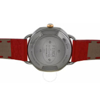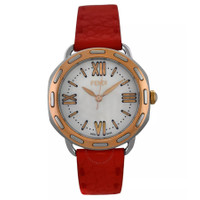 Silver-tone stainless steel case with a red leather strap. Fixed rose gold-tone stainless steel bezel. White dial with rose gold-tone hands and Roman numeral & index hour markers. Minute markers around the outer rim. Dial Type: Analog. Quartz movement. Solid case back. Round case shape, case size: 36 mm. Buckle clasp. Water resistant at 50 meters / 165 feet. Functions: hour, minute, second. Selleria Series. Luxury watch style. Watch label: Swiss Made. Fendi Selleria Quartz White Dial Ladies Watch F8302345H0. CASE Case Size: 36 Case Material: Stainless Steel Case Shape: Round Case Back: Solid BAND Band Material: Leather Band Type: Strap Band Color: Red Clasp: Buckle DIAL Dial Color: White Type: Analog Hands: Rose Gold-tone Dial Markers: Roman Numeral & Index Second Markers: Minute Markers around the outer rim Bezel: Fixed Bezel Color: Rose Gold-tone Bezel Material: Stainless Steel INFORMATION Brand: Fendi Series: Selleria Collection Name: Selleria Gender: Womens Model: F8302345H0 Watch Label: Swiss Made Movement: Quartz FEATURES Water Resistance: 50 meters / 165 feet Functions: Hour, Minute, Second Watch Features: Analog, Gold, Leather, Stainless Steel ADDITIONAL INFO Watch Style: Luxury Warranty: 2 Year Jomashop Warranty Jomashop Sku: Z-3AAF4 Department: Watches