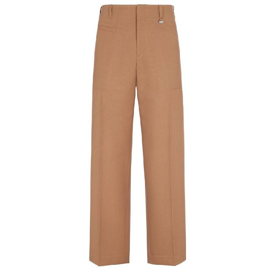 Fendi Men's Bottoms. Fashion category: Pants & Leggings. SKU: FB0863-AMYP-F0TZ8. Color: Noce. Fendi Straight-Leg High Waisted Pants. This pants feature a high-waisted straight leg design, belt loops on the waistband, a crease on the leg, welt pockets on the sides and back, a coin pocket at the front, and a metal plaque on the belt loop. 59% Fleece wool, 41% Polyester, nr 1 buttons: Mother-of-Pearl. GENERAL Brand Type: Designer Color: Noce INFORMATION Brand: Fendi Gender: Mens Model: FB0863-AMYP-F0TZ8 DETAILS Category: Bottoms Apparel Type: Pants & Leggings Material: Polyester, Wool ADDITIONAL INFO Jomashop Sku: -FB0863AMYPF0TZ8 Department: Clothing