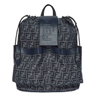 Fendi Men's Backpack. SKU: 7VZ070-AG0M-F1O97. Color: Denim Blu/Blu Scr/P. Size: W: 30 cm × H: 41 cm × D: 16 cm. Fendi Strike Medium FF Jacquard Backpack. This backpack features leather details, a flap with an embossed logo, two front pockets, a drawstring closure, an inner zipper pocket, and palladium-finish metalware, along with an additional detachable strap. 64% polyester, 23% cotton, 13% polyurethane, 100% calfskin, inside: 63% cotton, 34% polyester, 3% resin. Made in Italy. GENERAL Size Info: W: 30 cm × H: 41 cm × D: 16 cm Brand Type: Designer Color: Denim Blu/Blu Scr/P Apparel Type: Active & Lounge INFORMATION Brand: Fendi Gender: Mens Model: 7VZ070-AG0M-F1O97 DETAILS Material: Calfskin, Cotton, Polyester, Resin ADDITIONAL INFO UPC Code: 2004005598485 Jomashop Sku: Z-FWSAR Department: Bags Category: Backpack