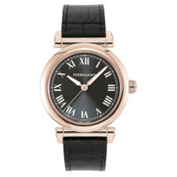 Rose gold-tone stainless steel case with a black leather strap. Fixed rose gold-tone stainless steel bezel. Black dial with rose gold-tone hands and Roman numeral hour markers. Minute markers around the outer rim. Dial Type: Analog. Quartz movement. Scratch resistant sapphire crystal. Pull / push crown. Solid case back. Round case shape, case size: 36 mm. Buckle clasp. Water resistant at 30 meters / 100 feet. Functions: hour, minute, second. Allure Series. Casual watch style. Watch label: Swiss Made. Ferragamo Allure Quartz Black Dial Ladies Watch SFS000224. CASE Case Size: 36 Case Material: Stainless Steel Case Shape: Round Case Back: Solid BAND Band Material: Leather Band Type: Strap Band Color: Black Clasp: Buckle DIAL Dial Color: Black Type: Analog Crystal: Scratch Resistant Sapphire Hands: Rose Gold-tone Dial Markers: Roman Numeral Second Markers: Minute Markers around the outer rim Bezel: Fixed Bezel Color: Rose Gold-tone Bezel Material: Stainless Steel Crown: Pull / Push INFORMATION Brand: Ferragamo Series: Allure Collection Name: Allure Gender: Womens Model: SFS000224 Watch Label: Swiss Made Movement: Quartz FEATURES Water Resistance: 30 meters / 100 feet Functions: Hour, Minute, Second Watch Features: Stainless Steel, Leather, Gold, Analog ADDITIONAL INFO Watch Style: Casual Jomashop Sku: FR-SFS000224 Department: Watches