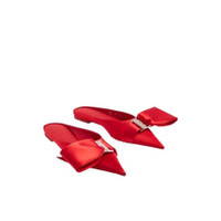 Ferragamo Ladies Flats. SKU: 01F792 762982. Color: Red. Ferragamo Asymmetric-Bow Satin Mules. These mules by Ferragamo feature a satin finish with a pointed toe and slip-on style for easy wear. They are designed with a branded footbed, a low stacked heel, and a leather outsole for comfort. The shoes are accented with silver-tone hardware and an asymmetric bow, complete with a logo-engraved buckle for a touch of elegance. Made in Italy. Please visit the brand website for sizing information. INFORMATION Brand: Ferragamo Model: 01F792 762982 Gender: Womens DETAILS Category: Flats Shoe Style: Mules Shoe Style: Mules Color: Red Shoe Vamp Style: Slip-on Upper Material: Satin Sole Material: Leather ADDITIONAL INFO Jomashop Sku: -01F792762982 Department: Shoes