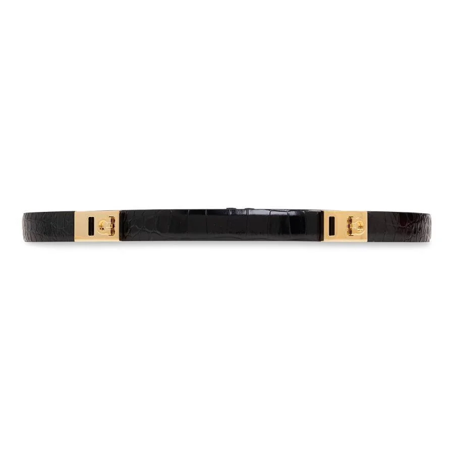Ferragamo Ladies Belts. Fashion category: Belts. SKU: 230318 773335. Color: Black. Crafted from treated calfskin and nubuck, this adjustable belt combines luxurious texture with versatile design. Inspired by the Hug collection, its dual gold-tone buckles add a refined touch. The back slider construction allows for easy width adjustment, making it effortlessly adaptable to any silhouette. A detachable buckle completes the look for a personalized fit and styling. 100% calf leather. Made in Italy. GENERAL Clothing Size: Ladies Belt Size: 100 Size Info: 100 Material: Leather Gender: Womens Color: Black Apparel Type: Belts INFORMATION Brand: Ferragamo Model: 230318 773335 ADDITIONAL INFO UPC Code: 8056283714495 Jomashop Sku: Z-Y964Y Department: Fashion Accessories Category: Belts