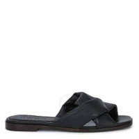 Ferragamo Ladies Slippers. SKU: 01F161 760881. Color: Black. Ferragamo Black Alrai Crossover-Strap Nappa Slides. The Alrai sandals from Ferragamo are crafted from luxurious super-soft lambskin nappa. They feature a knotted origami-style band, a padded insole, and a leather outsole. Made in Italy. Please visit the brand website for sizing information. INFORMATION Brand: Ferragamo Model: 01F161 760881 Gender: Womens DETAILS Category: Slippers Shoe Style: Slides Shoe Style: Slides Color: Black Shoe Vamp Style: Slip-on Upper Material: Lambskin Nappa Heel Size: 1 cm ADDITIONAL INFO Jomashop Sku: -01F161760881 Department: Shoes