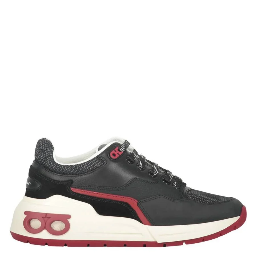 Ferragamo Ladies Sneakers. SKU: 030349 758274. Color: Black. Ferragamo Black Cosma Low Top Sneakers. Crafted in a mix of pebbled leather and technical fabric, the Cosma low-top sneakers offer a refined, sporty look. Designed with a round toe, rubber sole, and signature Ferragamo logo accents, they include an additional lace set for styling versatility. Materials: 80% Calf Leather, 20% Polyamide; Rubber sole. Made in Italy. Please visit the brand website for sizing information. INFORMATION Brand: Ferragamo Model: 030349 758274 Gender: Womens DETAILS Category: Sneakers Shoe Style: Low Top Shoe Style: Low Top Color: Black Shoe Vamp Style: Lace-up Upper Material: Leather Sole Material: Rubber ADDITIONAL INFO Jomashop Sku: -030349758274N Department: Shoes