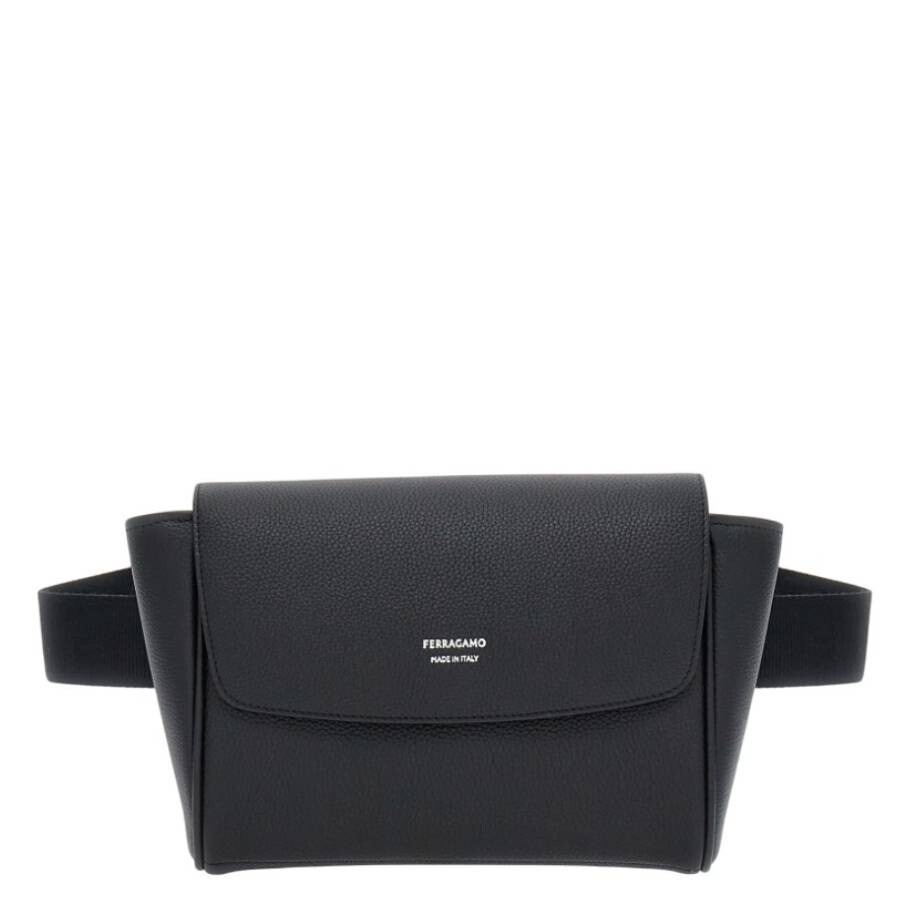 Ferragamo Men's Belt Bag. SKU: 241617 776003. Color: Black. Size: H 6.2" x L 8.2" x W 1.1". Ferragamo Black Hammered Calfskin Belt Bag. This belt bag showcases a hammered calfskin texture and features a flap with magnetic button fastening that opens to a lined interior, complete with a flat pocket to keep your personal items organized. The adjustable jacquard tape belt, adorned with a logo, can be detached to convert the bag into a handy pouch. 100% Leather. Made in Italy. GENERAL Size Info: H 6.2" x L 8.2" x W 1.1" Color: Black INFORMATION Brand: Ferragamo Gender: Mens Model: 241617 776003 DETAILS Material: Leather Occasion: Casual Closure: Magnetic Snap DIMENSIONS Size: Small ADDITIONAL INFO UPC Code: 8056283745956 Jomashop Sku: Z-GHFMV Department: Bags Category: Belt Bag