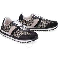 Salvatore Ferragamo Ladies Sneakers. SKU: 030290 756550. Color: Black. Ferragamo Black Iulia Gancini Print Low-Top Sneakers. Black and cream 'Iulia' sneakers made from ECONYL® - recycled nylon produced from ocean waste like fishnets, this lace-up pair is complete with leather trims, Gancini motif and rubber sole in black and white. Made in Italy. Please visit the brand website for sizing information. INFORMATION Brand: Ferragamo Model: 030290 756550 Gender: Womens DETAILS Category: Sneakers Shoe Style: Fashion Shoe Style: Fashion Color: Black Shoe Vamp Style: Lace-up Sole Material: Rubber ADDITIONAL INFO Jomashop Sku: -030290756550N Department: Shoes