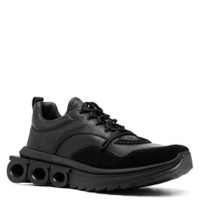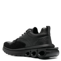 Ferragamo Men's Sneakers. SKU: 021581 762772. Color: Black. Ferragamo Black Running Leather Sneakers. This sneaker is crafted from premium calf leather with a smooth-grain and subtly pebbled texture, featuring a panelled construction accented by soft suede inserts. A perforated toebox enhances breathability, while the logo-debossed tongue and heel pull-tab add signature detailing. Designed with a round toe and a classic front lace-up fastening, it’s finished with a branded insole and a distinctive Gancini cut-out rubber sole for a refined yet sporty look. Made in Italy. Please visit the brand website for sizing information. INFORMATION Brand: Ferragamo Model: 021581 762772 Gender: Mens DETAILS Category: Sneakers Shoe Style: Running Shoe Style: Running Color: Black Shoe Vamp Style: Lace-up Upper Material: Fabric and Leather Sole Material: Rubber ADDITIONAL INFO Jomashop Sku: -021581762772N Department: Shoes