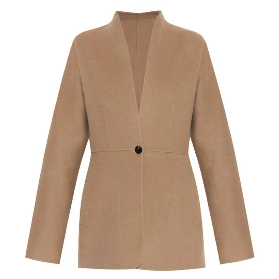 Ferragamo Collarless One Button Wool Blazer, Brand Size 40 ( US Size 6 )