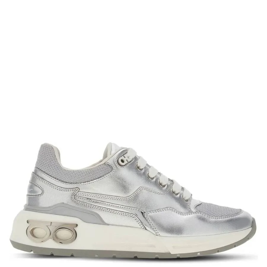 Ferragamo Ladies Sneakers. Cosma Low series. SKU: 030349 758717. Color: Silver. Ferragamo Cosma Low-Top Sneakers. Crafted in a mix of pebbled leather and technical fabric, the Cosma low-top sneakers offer a refined, sporty look. Designed with a round toe, rubber sole, and signature Ferragamo logo accents. Materials: 80% Calf Leather, 20% Polyamide; Rubber sole. Made in Italy. Please visit the brand website for sizing information. GENERAL Collection Name: Cosma Low INFORMATION Brand: Ferragamo Series: Cosma Low Model: 030349 758717 Gender: Womens DETAILS Category: Sneakers Shoe Style: Low Top Shoe Style: Low Top Color: Silver Shoe Vamp Style: Lace-up Sole Material: Rubber ADDITIONAL INFO Jomashop Sku: -030349758717N Department: Shoes